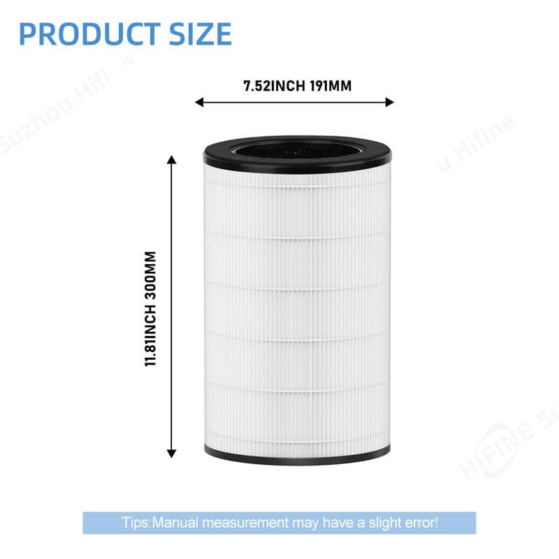 Engineered for optimal air purification, this Hifine filter combines activated carbon and a fine pre-filter to effectively capture airborne particles and odors, ensuring enhanced indoor air quality. The robust construction with an outer diameter of 191mm and height of 300mm is precisely tailored to fit HoMedics AP-T40 and AP-T40WT models, providing a seamless replacement solution. Its eco-friendly design emphasizes durability and consistent performance, backed by a 1-year warranty and electric power source compatibility, making it a reliable component for maintaining clean air environments in various settings.