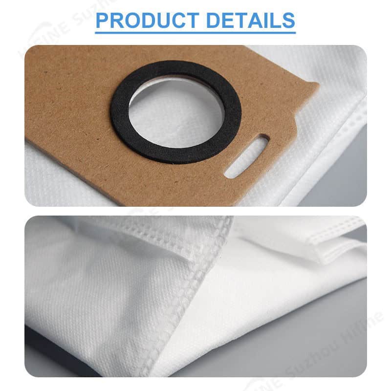 This vacuum cleaner dust bag is made from high-efficiency non-woven fabric, designed for compatibility with the Hifine MS1 model. It offers a filtration efficiency of 99.99% and is suitable for use in RVs, outdoor settings, hotels, and households. The bag features a standard size and white color, with custom packing options available.