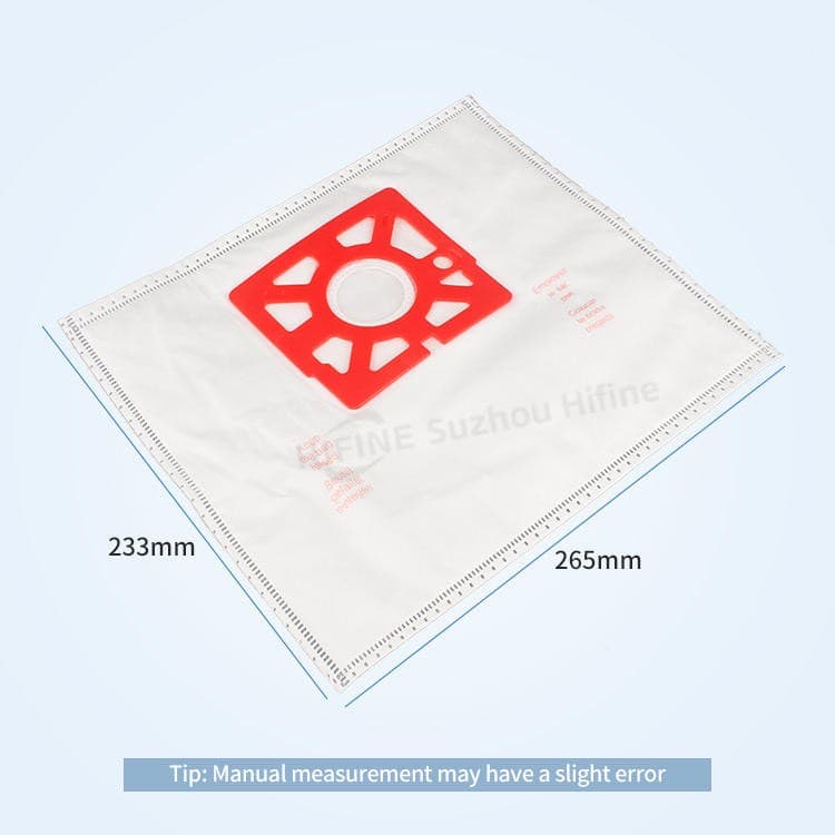 The Hifine V-C30 Vacuum Cleaner Nonwoven Dust Bag is engineered with precision using durable non-woven fabric, ensuring optimal filtration and dust retention for industrial and home appliance applications. Its design focuses on material quality, providing a robust barrier against fine particles while maintaining airflow efficiency. Manufactured in Jiangsu, China, this dust bag is built to withstand regular use in demanding settings, with a standard size that fits seamlessly into compatible vacuum cleaners. The non-woven construction enhances durability and reduces the risk of tears, making it a reliable component for maintaining clean air and extending the lifespan of vacuum systems.