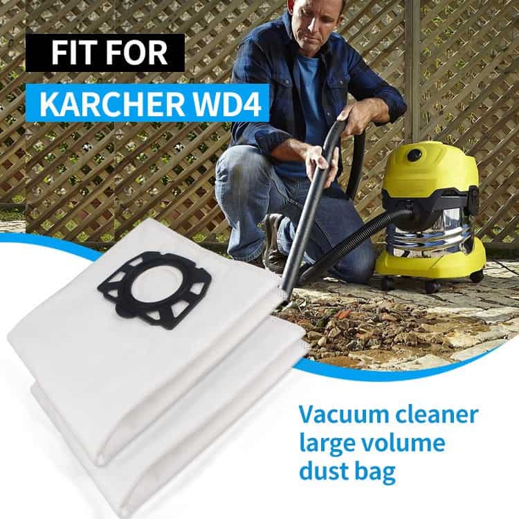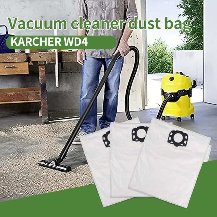 This vacuum cleaner dust bag is constructed from non-woven material with H13 efficiency filtration for superior particle capture. Designed for the WD4 model, it offers high permeability and is suitable for car, outdoor, and commercial applications. Available in white with standard sizing and customizable options.