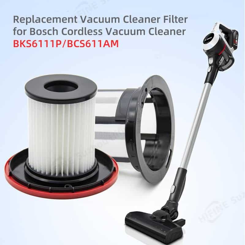 Engineered as a replacement part for the BKS6111P vacuum cleaner model, this component combines a HEPA filter with durable plastic housing to ensure reliable filtration performance. The high-quality materials provide excellent durability and efficient particle capture, while the silk screen printing offers clear branding and model identification. Manufactured in Jiangsu, China, this part is designed to meet rigorous standards for household vacuum systems, with precise dimensions and lightweight construction that facilitate easy installation and maintenance.