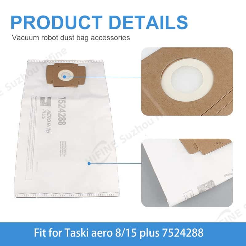 The Hifine dust bag is engineered with high-quality nonwoven fabric, providing superior durability and effective dust containment for vacuum cleaner systems. Its design focuses on maintaining high filtration efficiency, ensuring that fine particles are captured without compromising airflow. The standard size ensures a precise fit for compatible models, enhancing overall vacuum performance and longevity. This part is built to withstand regular use in demanding settings, from industrial garages to commercial hotels, with a material that resists tearing and maintains integrity under continuous operation.